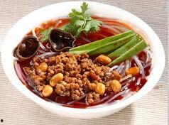 酱料主要由辣椒、花椒、八角、桂皮等香料熬制而成,口感麻辣鲜香,回味无穷。而且,他们家的酸辣粉采用的是手工制作,每一碗粉都充满了匠心精神。